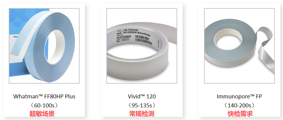 固定其他所有条件(抗体、金球/荧光微球、样品垫、工艺参数),只改变NC膜种类。