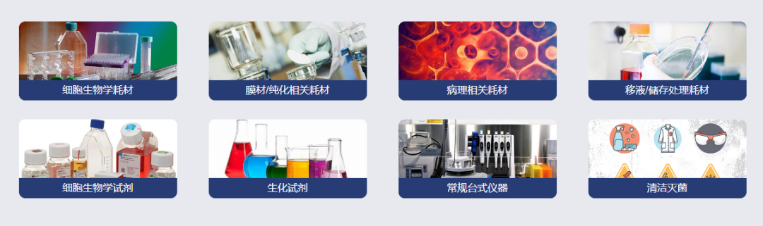 细胞生物学耗材,膜材纯化相关耗材,病理相关耗材移液储存处理耗材,细胞生物学试剂,生化试剂,常规台式仪器,清洁灭菌。可根据所需选择自己需要的产品